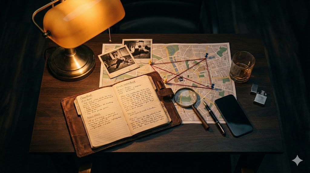 Every mystery is generated from scratch by AI — unique victims, suspects with secrets to hide, locations to search, and evidence to piece together. The killer, the motive, the method — all different every time.